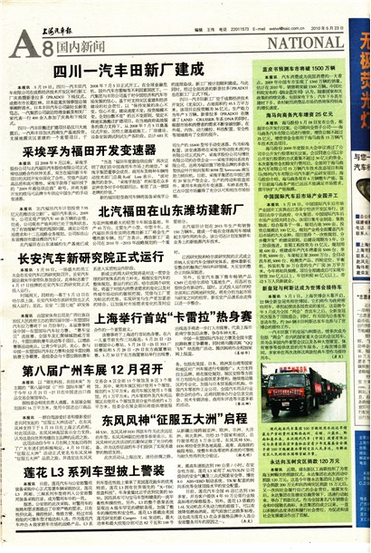 本报讯 自2008年9月以来,采埃孚股份公司与北汽福田汽车股份有限公司正式缔结战略合作伙伴关系,双方在福田新卡车项目的共同开发中深化了合作。凭借产品的高品质和高可靠性,采埃孚获得了福田授予的“2009年最佳供应商”称号,并将为新开发的欧马可品牌卡车供应中国生产的手动变速器。