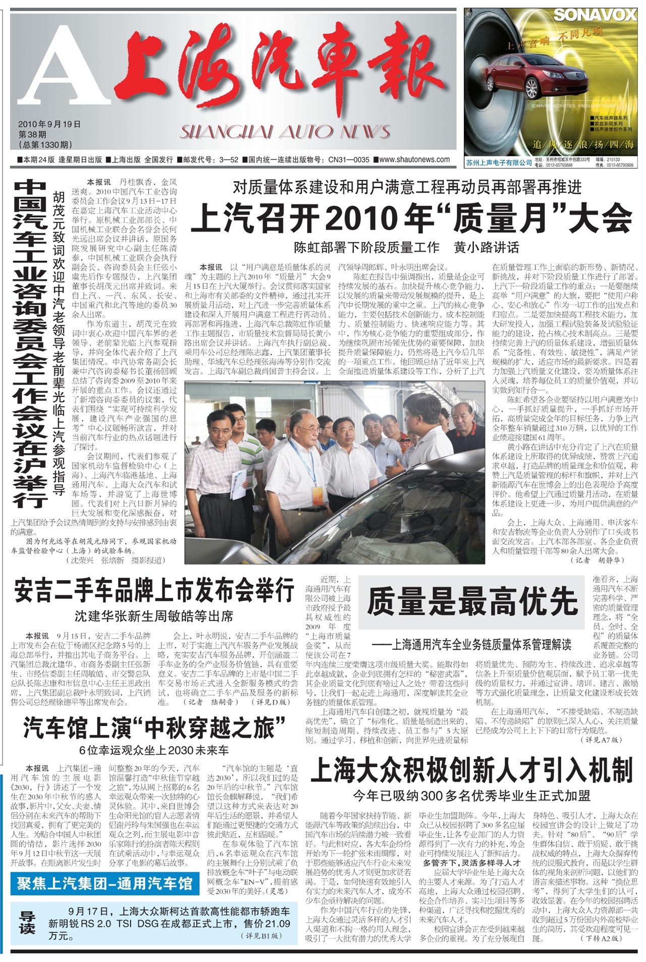 上汽召开2010年“质量月”大会