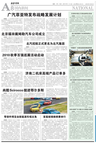 本报讯 9月28日,北京汽车工业控股有限责任公司正式对外宣布,公司更名为“北京汽车集团有限公司”。