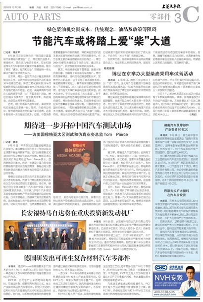 本报讯 9月26日,博世在北京举办了以“‘芯’动力,乐无限”为主题的大型柴油乘用车试乘试驾活动,约30名全国各地的媒体代表亲身体验了博世现代柴油技术所带来的清洁、经济和强劲动力。