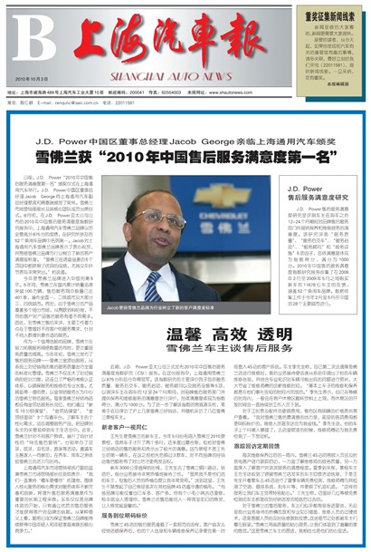 近期,J.D.Power亚太公司正式发布2010年中国售后服务满意度指数研究(CSI)报告。在这份报告中,上海通用雪佛兰以875分的总分夺得冠军。该指数研究的主要评价因子包括服务质量、服务后交车、服务启动、服务顾问以及服务设施等5项,以测评车主在购车的12至24个月期间,对品牌售后服务部门所提供保养和维修服务的满意度进行评价,总体满意度体现为指数得分,满分为1000分。为了进一步了解该指数的客观真实性,笔者于近日探访了沪上几家雪佛兰经销店,并随机采访了几位雪佛兰景程车主。