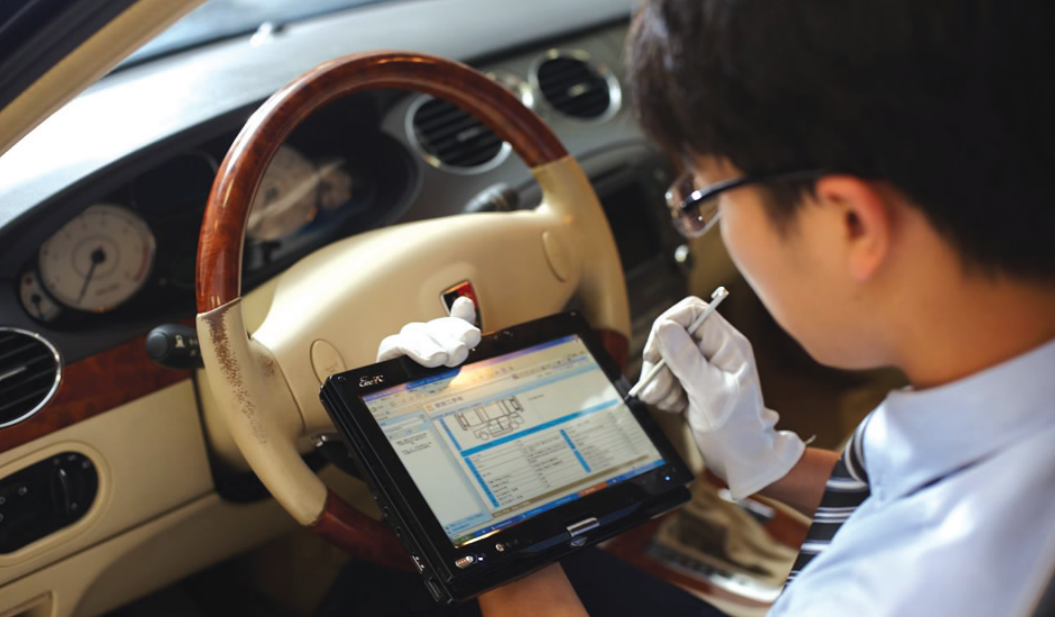 安吉二手车的评估人员必须接受专业的培训,并达到星级后才能独自接待客户,要掌握时钟绕车评估流程、AICS-39项检测评估表的填写规范、车况等级标准、痕迹识别和现象判定等方法,以及熟练使用安吉检测评估系统。在正式评估前,为防止评估过程对客户车辆造成污染,会为客户车辆安装防尘设备,之后会严格按照时钟绕车评估流程,认真地检查车辆的每一个部位。待评估完成后,评估师会耐心地为客户指出所发现的问题。