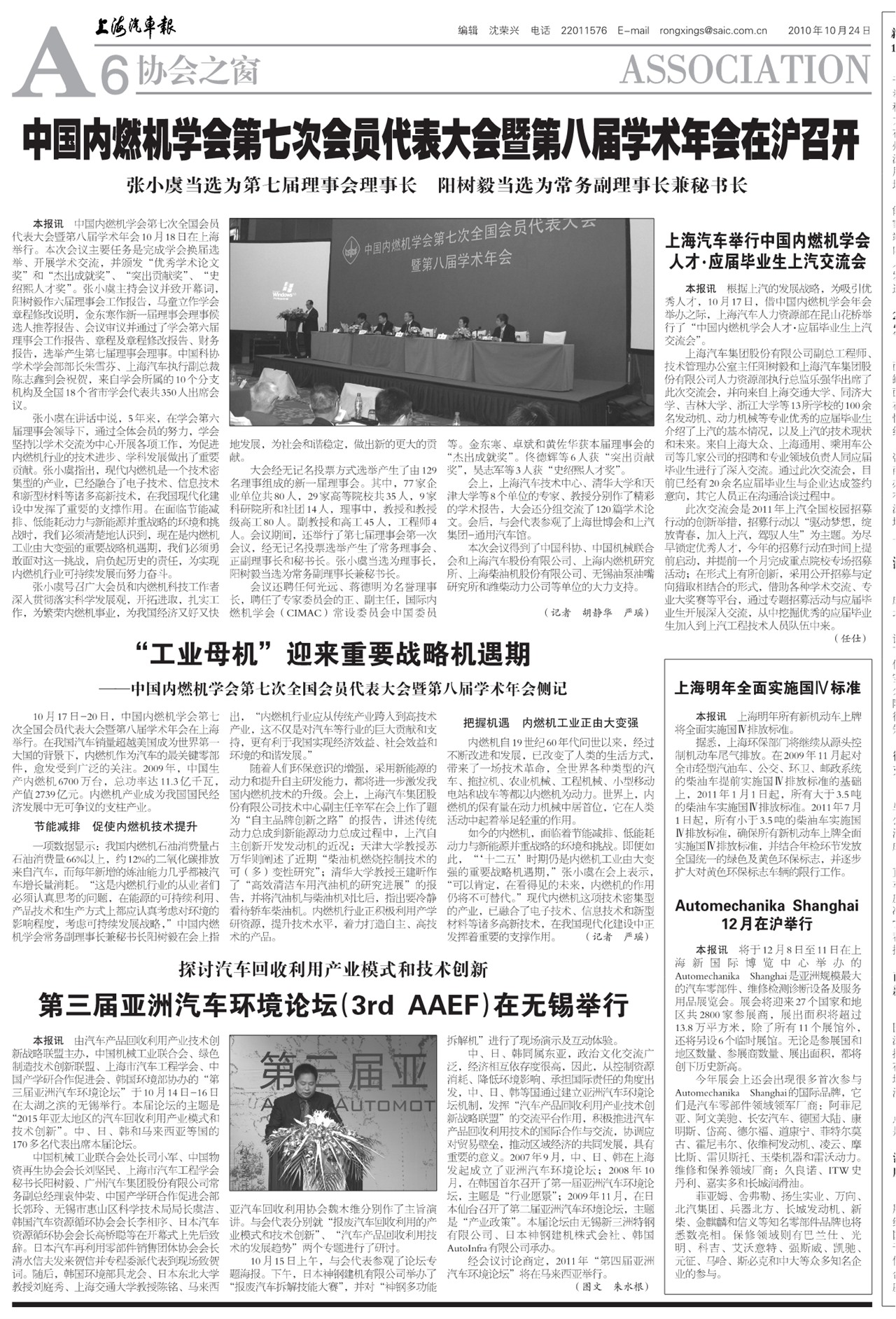 中国内燃机学会第七次会员代表大会暨第八届学术年会在沪召开
