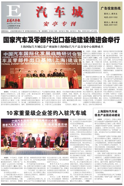 本报讯 11月29日,记者从上海国际汽车城信息产业园新闻发布会获悉,国家汽车及零部件出口基地(上海)将依托上海国际汽车城的产业优势,加快信息产业园建设,力争用3~5年时间,实现打造中国汽车及零部件行业“安亭指数”的目标,成为国内汽车行业及零部件交易的风向标。