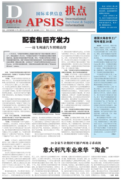 大陆集团中国区负责人Jay Kunkel在致辞时说,“该工厂的投产将对全球增长最迅速的中国汽车市场做出较大的贡献,同时有助于我们到2013年实现亚洲区销售收入达到集团总销售收入25%的计划。”