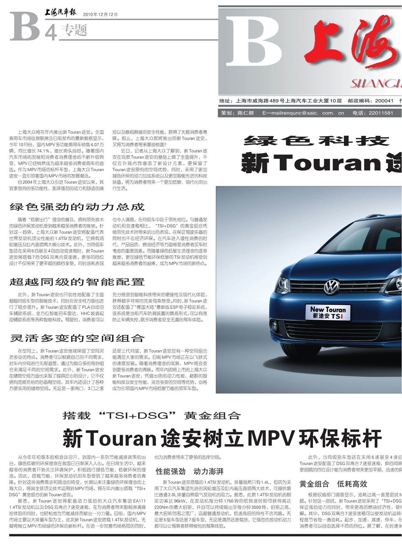 新Touran途安树立MPV环保标杆