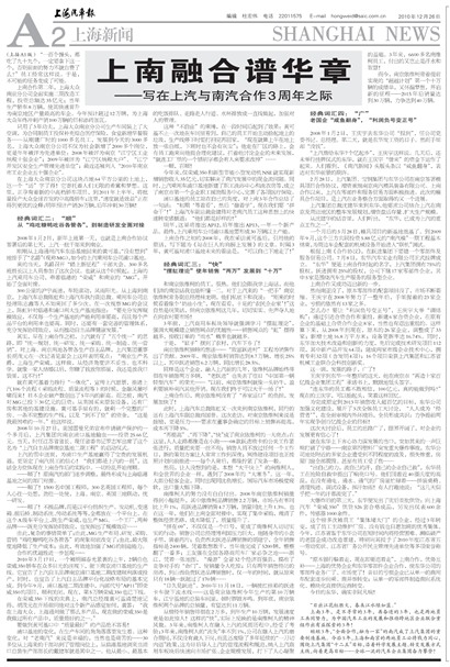 短短3年,“全面合作,融为一家”的南汽成了上汽集团的重要制造基地。今后5年,上海和南京的两地员工必将勠力同心,围绕上汽集团“十二五”目标,沿着科学发展主题、转变发展方式主线,向着更高目标-——全球一流的汽车企业集团奋力攀登!