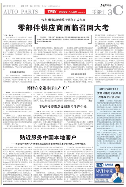 本报讯 美国TRW(天合)汽车集团旗下的西班牙摩擦材料集团(FMG)投资设立的青岛天摩亚太汽车部件有限公司近日在山东青岛市高新区胶州湾北部园区开业。