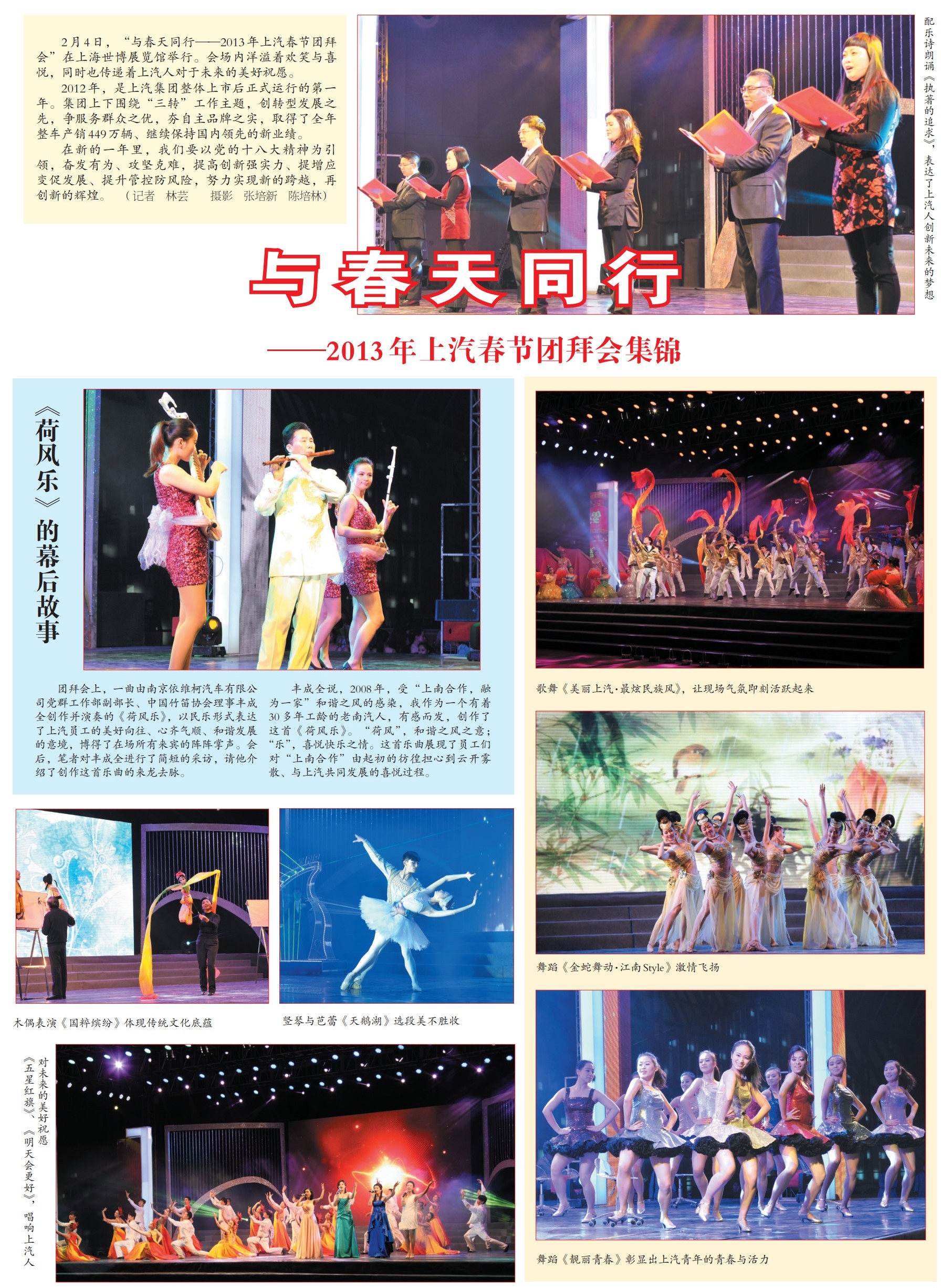 2月4日,“与春天同行——2013年上汽春节团拜会”在上海世博展览馆举行。会场内洋溢着欢笑与喜悦,同时也传递着上汽人对于未来的美好祝愿。