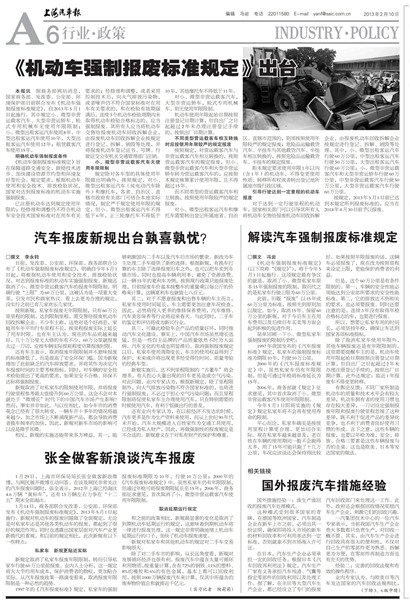 1月14日,商务部联合发改委、公安部、环保部发布《机动车强制报废标准规定》,2013年5月1日起施行。新规对机动车的报废问题做了全面规定,无论是对私家车还是其他各类机动车的报废,都起到了很好的规范作用;同时也透露出国家层面对汽车产业更新换代的重视。和以前的规定相比,此次新规有以下一些特点: