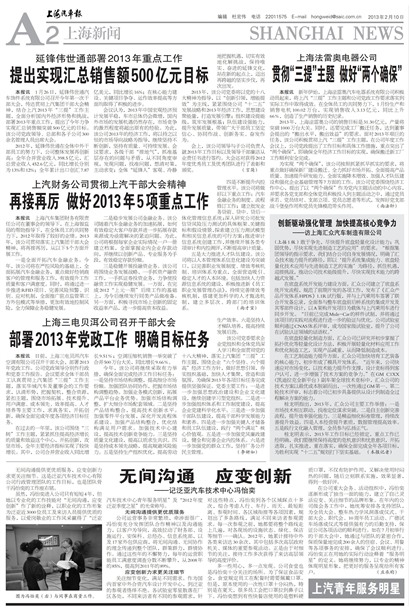 本报讯 上海汽车集团财务有限责任公司在董事会的领导下,在上海银监局的帮助指导下,在全体员工的共同努力下,2012年取得了较好的业绩。2013年,该公司贯彻落实上汽集团干部大会精神,将再接再厉,从以下5个方面开展工作。