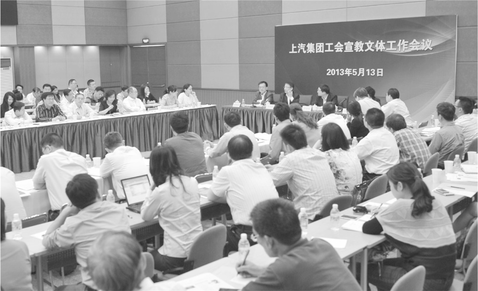 本报讯 上汽集团工会宣教文体工作会议5月13日在上海纳铁福传动轴有限公司员工活动中心召开。会议强调,各级工会要进一步探讨工会宣教文体工作如何在“大宣传、大教育、大文化”的工作格局中发挥作用,探索在新时期、新形势、新情况下工会宣教文体工作创新发展的新方法、新途径、新举措,以改革创新精神不断推进工会宣教工作做实、做细,真正发挥党联系职工群众的桥梁纽带作用。