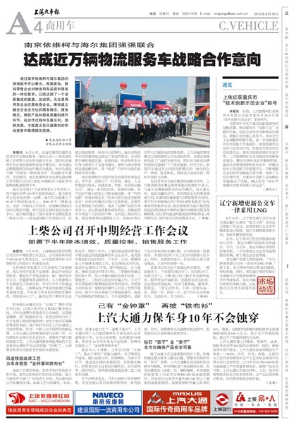 为贯彻中央关于建设创新型国家的战略部署,推动重庆市“创新工业”战略的实施,促进企业技术创新体系的建设,增强企业的核心竞争力,加快全市工业调整和转型升级,进一步发挥重庆市技术创新工作基础好、成效显著的企业的示范带动作用,经重庆市经济和信息化委员会、重庆市财政局组织专家评审,上汽依维柯红岩在加强技术创新体系建设、健全完善科技进步激励机制、推动企业管理创新和技术进步、积极为技术人员创新工作搭建平台、不断增强企业的技术创新能力等方面,发挥了示范引领作用,为重庆市创新工业战略的实施做出了贡献,被认定为“2013年度重庆市技术创新示范企业”。(李代元)