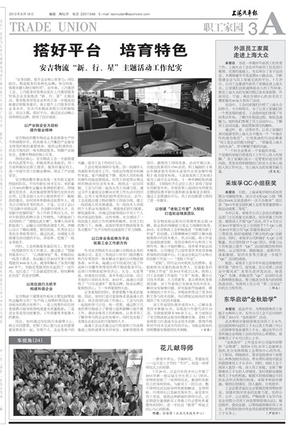 今年以来,采埃孚公司工会结合质量保证部门立足质量文化建设,结合质量工作改进,继续深入开展“QC”活动,并于4月在公司2013年誓师大会上分别授予7个QC小组为2012年度公司“QC质量改善活动”一、二、三等奖项,较好地鼓励了群众性的QC创新活动。同时,采埃孚公司积极扩大QC立项数量,共立项申报17个QC项目,并着力从工作机制上提升“QC”活动的规范性和持续性,从立项评审、跟踪推进、成果评价、表彰激励、知识共享等方面进一步提升“QC”活动的成效。