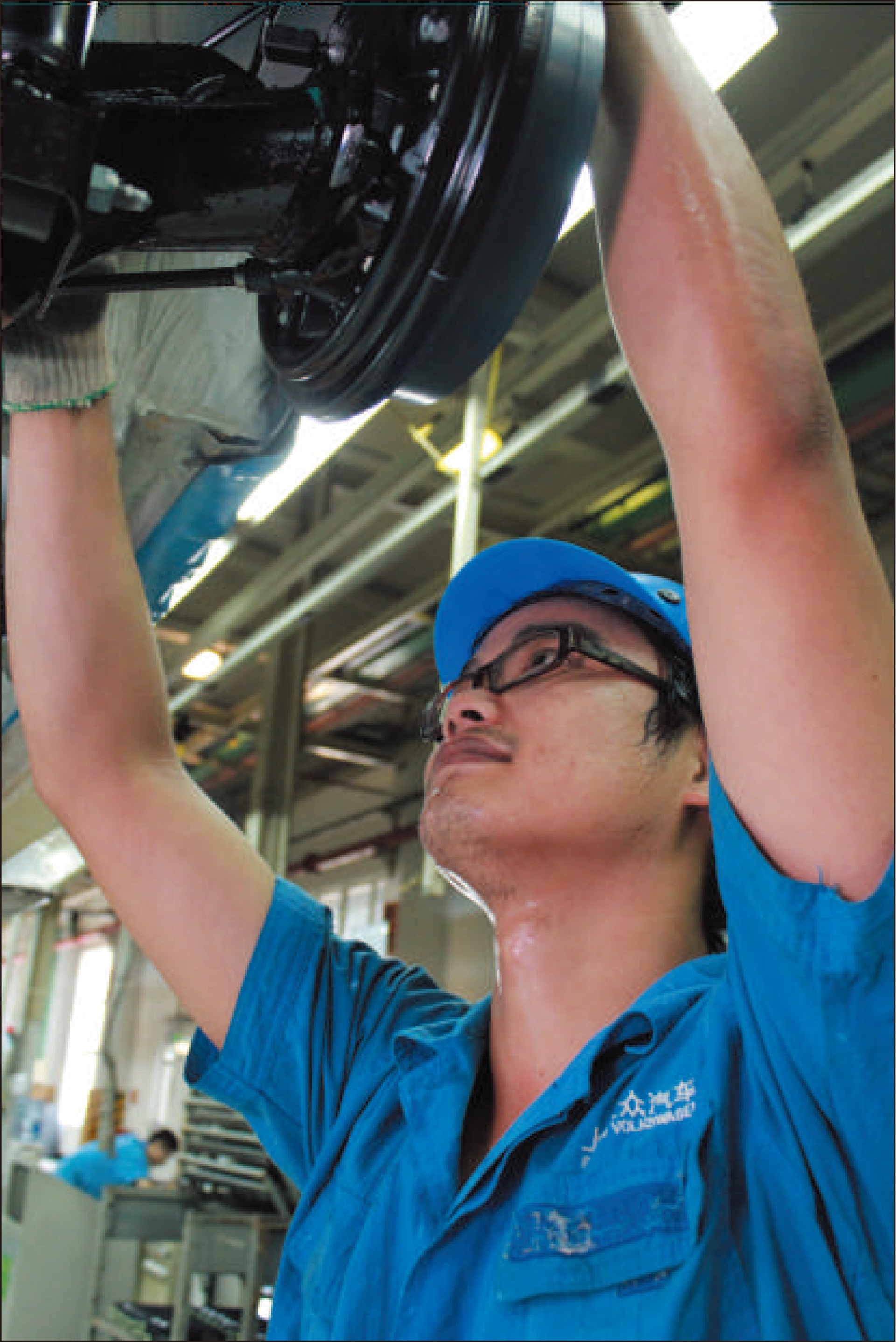 今夏申城和国内部分地区创下史上最高气温纪录。在上海、柳州、重庆、南京和烟台等生产基地,每天都见证着战高温、保安全、促生产的动人场面。日前,上汽集团团委开展“烈日下的汗水”照片征集活动,将镜头对准一线青年员工,记录了他们战高温的瞬间。图为上海大众汽车一厂总装车间二工段的一个场景。 (详见A5版)