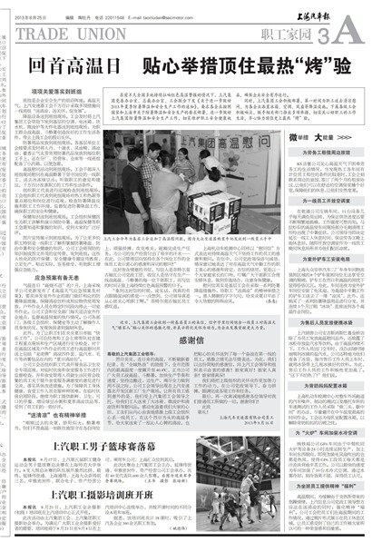 近日,上汽集团工会收到一封基层员工的来信,信中字里行间饱含一线员工对高温天气“娘家人”贴心关怀的感激之情,并表示将化关怀为动力,为企业发展贡献更大力量。