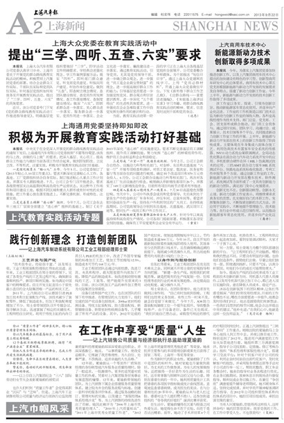 本报讯 上海大众汽车有限公司党委认真学习中央、上海市委关于开展党的群众路线教育实践活动的精神,积极贯彻上汽集团党委的部署,结合企业群众工作实际、干部队伍实际和党员队伍实际,针对基层党组织如何有效务实开展教育实践活动,提出了“三学、四听、五查、六实”的具体要求。