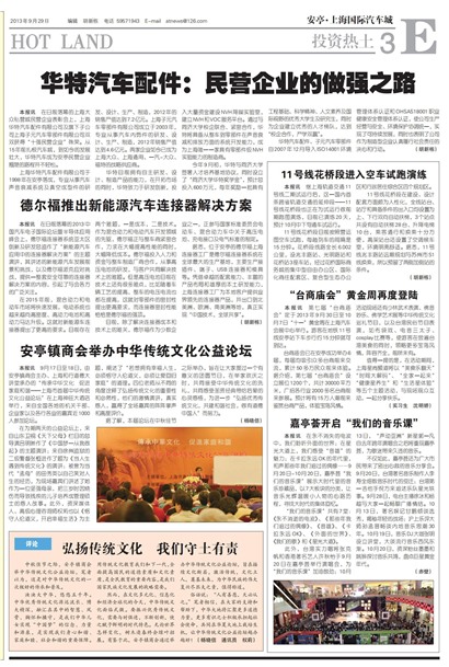 据悉,位于安亭的德尔福上海连接器工厂是德尔福连接器系统在全球最大的生产基地,主要生产接插件、端子、USB连接器和模具等。凭借卓越的配套能力、丰富的产品布局和雄厚的本土研发能力,上海连接器工厂为本地客户提供业界领先的连接器产品,并出口到北美洲、欧洲、南美洲等地,真正实现“中国技术,全球共享”。(胡新栋)