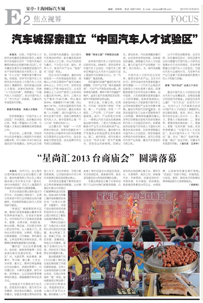 建设中国汽车人才试验区在国内汽车行业尚属首次,没有现成模式和经验可资借鉴。试验区应该怎么建?“先行先试”应该先行什么、先试什么?汽车城率先启动《中国汽车人才试验区》课题研究。经过数轮调查、座谈、研讨,有关各方初步达成三点共识:一,要人才,更要人才观念创新;二,要政策,更要体制机制创新;三,要留人,更要“生态环境”创新。在安亭探索建立“中国汽车人才试验区”,走出中国汽车人才“先行先试”路,优化“海归”创新环境、拓展“海归”创业空间,为建设汽车强国作贡献。(通讯员 江济申)