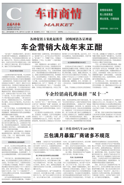 近日登录各大电商网站发现,东风雪铁龙、东风标致、长安欧诺、北京汽车等品牌也纷纷赶在“双十一”之前在网上“开店”,参与到网络营销大战之中,并发布“网上购车”促销政策。有的在预订之前就送五六百元的优惠券,有的则宣称网上购车可参加抽奖,有“百分百的中奖机会”。目前开设网店的汽车销售商主要有两种类型,一类是由汽车厂家直接开设的网络旗舰店,如吉利等,另一类则是各个地方性的汽车4S店,这些4S店的网络销售店一般都标明“只在实体店所在区域内销售”。除了吉利等少数几家本土品牌旗舰店可以在网上全款卖车之外,多数网店只能够在网上下订单,然后再到实体店选车、购车。
