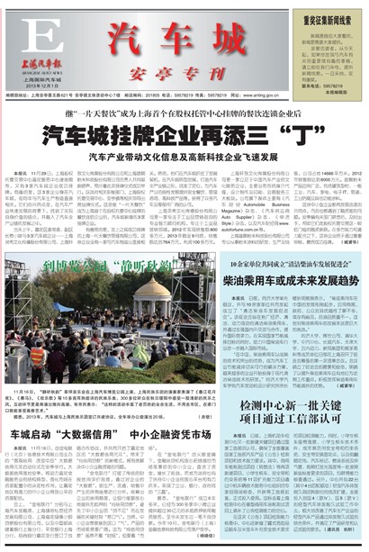 本报讯 11月29日,上海股权托管交易中心嘉定服务中心捷报频传,又有3家汽车城企业成功挂牌。有趣的是,这3家企业身在汽车城,却均非与汽车生产制造直接相关。它们的共同点是,在汽车产业快速发展的背景下,找到了实现自身价值的锚点,并融入了汽车全产业链的发展之中。