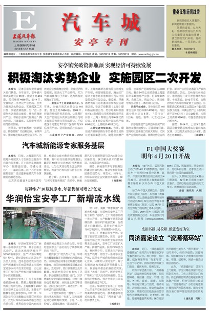 本报讯 记者日前从安亭镇相关部门获悉,今年全年,安亭镇共淘汰劣势企业20家,盘活土地474亩,节约标煤4695吨。2014年,全镇将进一步优化产业结构,加大力度淘汰劣势企业、实施园区二次开发,突破资源瓶颈,为“进一步提升先进制造业能级、着力培育新兴产业、积极引进现代服务业”腾出空间、打造载体,实现安亭经济的可持续发展。