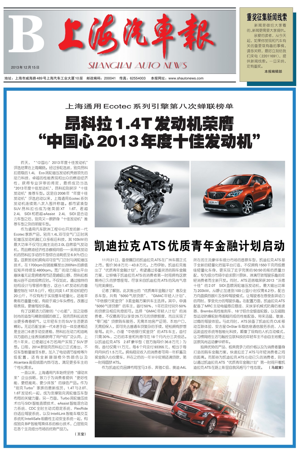 昂科拉1.4T发动机荣膺“中国心2013年度十佳发动机”