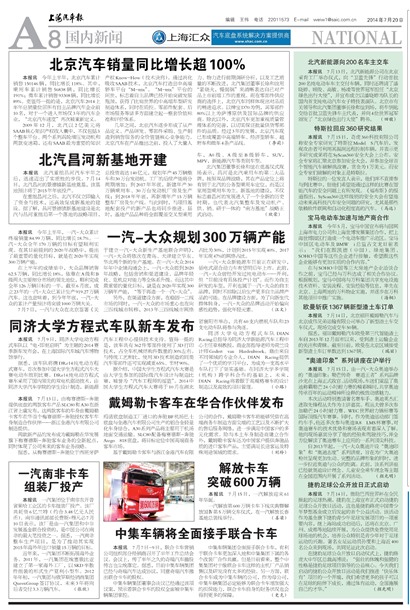 7月7日,一汽与大众在北京签署《关于建立一汽-大众新生产基地联合声明》,一汽-大众将依次在青岛、天津建立华东、华北两个新的生产基地。在一汽-大众2014年年中业绩沟通会上,一汽-大众提到2020年战略,包括营销和渠道建设、品牌年轻化、危机应对能力等全体系升级。而其中最重要的量化目标,就是在2020年实现300万辆年产能,“等于再造一个一汽-大众”。