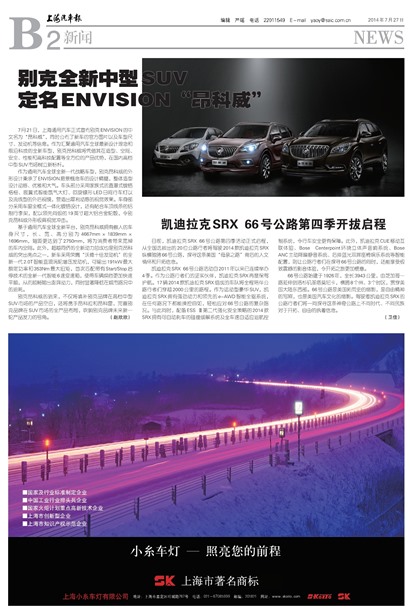凯迪拉克SRX 66号公路活动自2011年以来已连续举办4季。作为公路行者们的坚实伙伴,凯迪拉克SRX再度保驾护航。17辆2014款凯迪拉克SRX组成的车队将全程陪伴公路行者们穿越2000公里的路程。作为运动型豪华SUV,凯迪拉克SRX拥有强劲动力和领先的e-AWD智能全驱系统,在任何路况下都能操控自如,轻松应对66号公路的复杂路况。与此同时,配备ESS Ⅱ第二代强化安全策略的2014款SRX拥有可自动刹车的碰撞缓解系统及全车速自适应巡航控制系统,令行车安全更有保障。此外,凯迪拉克CUE移动互联体验、Bose Centerpoint环绕立体声音响系统、BoseANC主动降噪静音系统、后排蓝光双屏座椅娱乐系统等智能配置,则让公路行者们在探寻66号公路的同时,还能享受极致震撼的影音体验,令开拓之旅更加惬意。