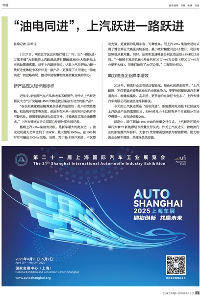2025年,物流行业正在经历智能化、绿色化的深刻变革。“上汽跃进,不仅要稳步提升燃油车的全球竞争力,更要抢抓新能源汽车赛道商机,构建规模化、高品质、更节能的电动轻卡生态。”上汽大通汽车有限公司副总经理练朝春说。