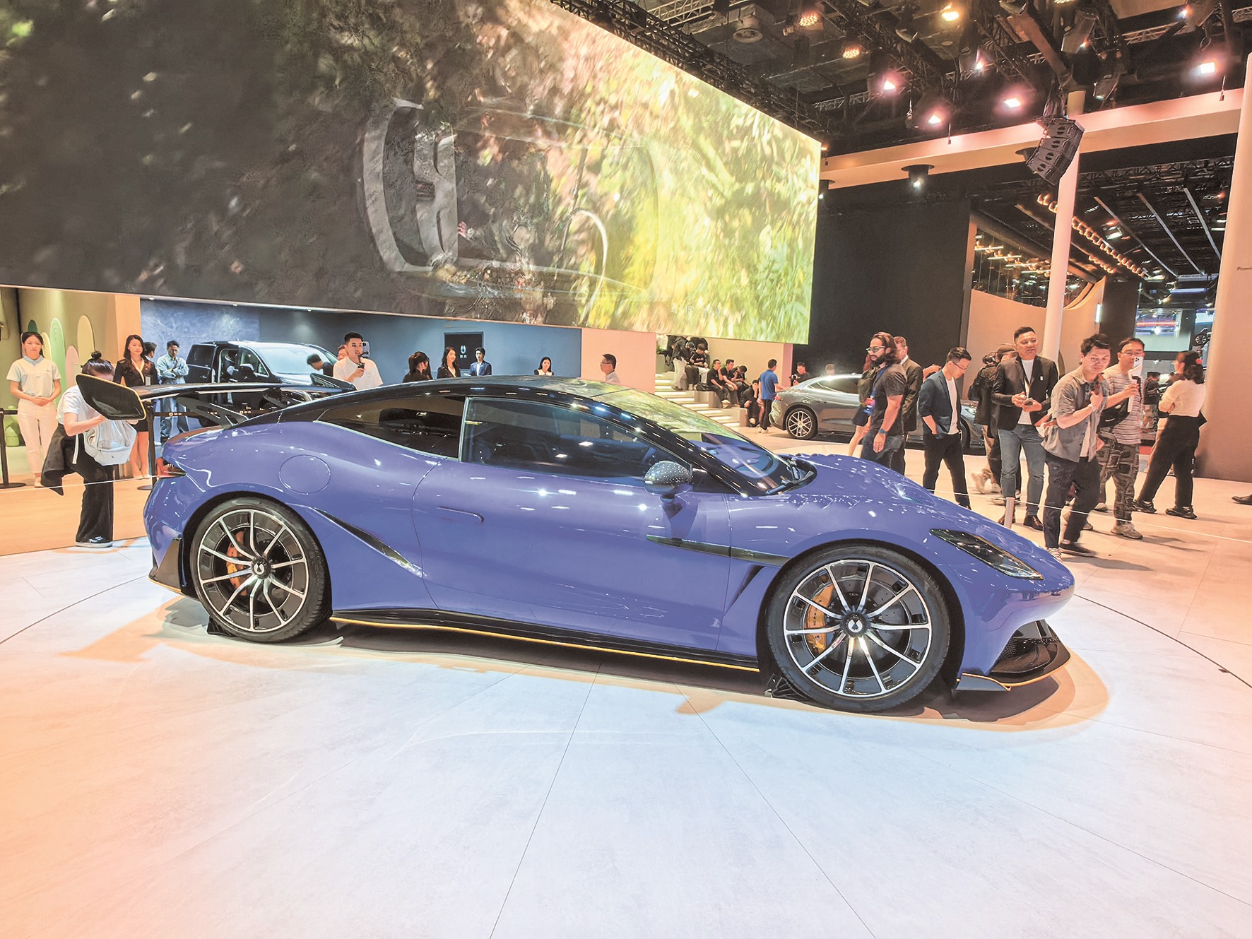 腾势首款概念跑车——腾势Z全球首秀,采用Pure Emotion“驭心流形·本真之境”全新设计理念,并搭载中国首款全栈自研的线控转向系统、云辇-M、全线控底盘、易三方等尖端技术。腾势Z概念跑车以量子脉冲前脸、锋光流形腰线、曲率流变尾部等,实现空气动力学与功能性设计的完美融合。内饰配置则拥有赛车式座舱、碳纤维骨副仪表台、碳纤维一体式座椅、高强度防滚架等配置,从赛车驾驶的纯粹性与操作的便捷性出发,打造中国超跑无与伦比的全维体验。