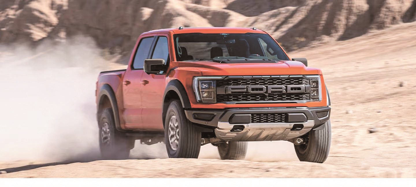 新福特F-150猛禽中控台以大量矩形元素拼接,搭配飞机推进器造型的挡把,营造出强烈的机械美感。物理按键的密集排布和12英寸中控屏组合,既保留了硬派越野车的操作直觉,也满足了现代科技需求。新车的动力系统仍是熟悉的“配方”:3.5L EcoBoost V6双涡轮增压发动机可爆发311kW的最大功率和684Nm的峰值扭矩,匹配10AT变速箱。越野性能方面,分时四驱系统、可锁止中央差速器及后桥差速锁的“黄金三角”组合,赋予其征服极限地形的底气。