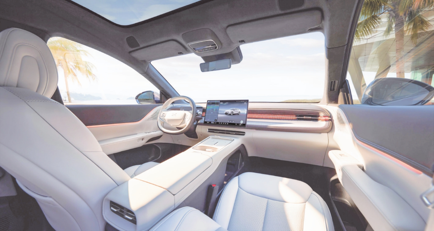 新车对车内屏幕进行了升级,配备了10.25英寸全液晶仪表和15.6英寸悬浮式中控屏。同时,座舱芯片升级为高通骁龙8295P。车机搭载XOS天玑系统,内置AI小P智能语音助手,支持“四音区识别+声源定位”,用户可以通过语音指令轻松控制车辆的各项功能。