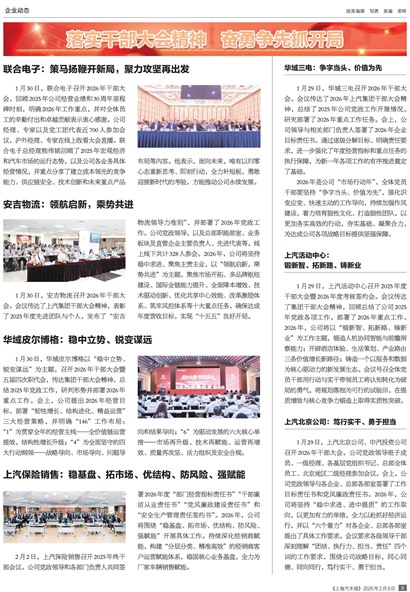 1月29日,上汽北京公司、中汽投资公司召开2026年干部大会。公司党政领导班子成员、一级经理、各基层党组织书记、总部全体员工、北京地区二级经理参加会议。会上,公司党政领导与各企业、总部各部室签署了工作目标责任书和党风廉政责任书。2026年,公司将坚持“稳中求进、进中提质”的工作取向,以更加有力的举措,全力以赴抓好经济运行,并以“六个着力”对各企业、总部各部室提出了具体工作要求。会议要求各级领导干部深刻理解“团结、执行力、担当、责任”四个词的工作要求,围绕公司战略目标,同心同德、同向同行,笃行实干、勇于担当。