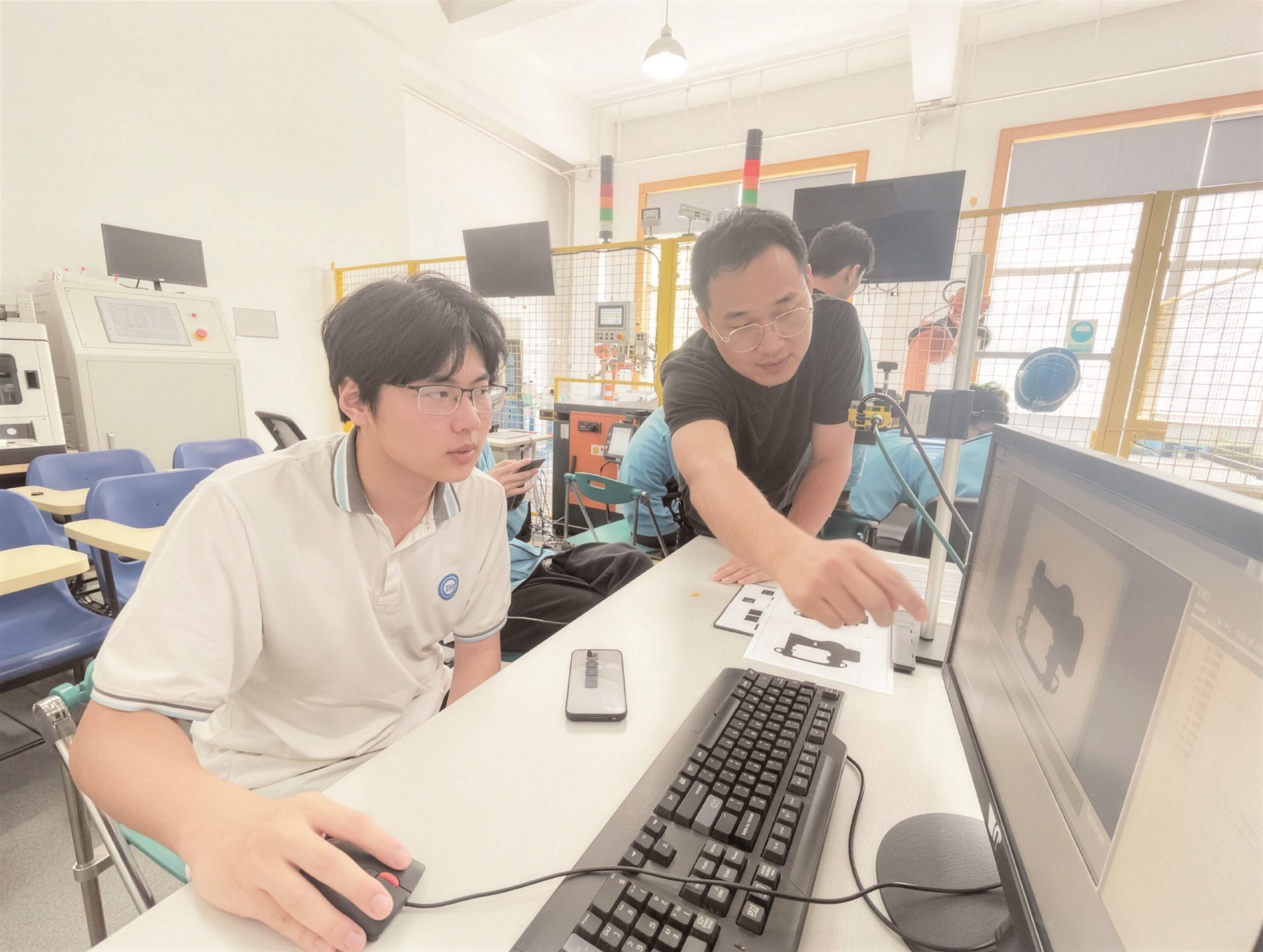 为了让学员快速上手,他放弃了传统的“念教材、讲理论”模式,将企业真实生产场景转化为教学案例,通过手把手演示操作要点,让抽象技术变得直观易懂,把“哪里容易出错”“如何快速校准”这些书本上没有的干货,毫无保留地分享出来;遇到学员卡壳,他不直接给出答案,而是引导大家一起排查问题,培养独立解决问题的能力。
