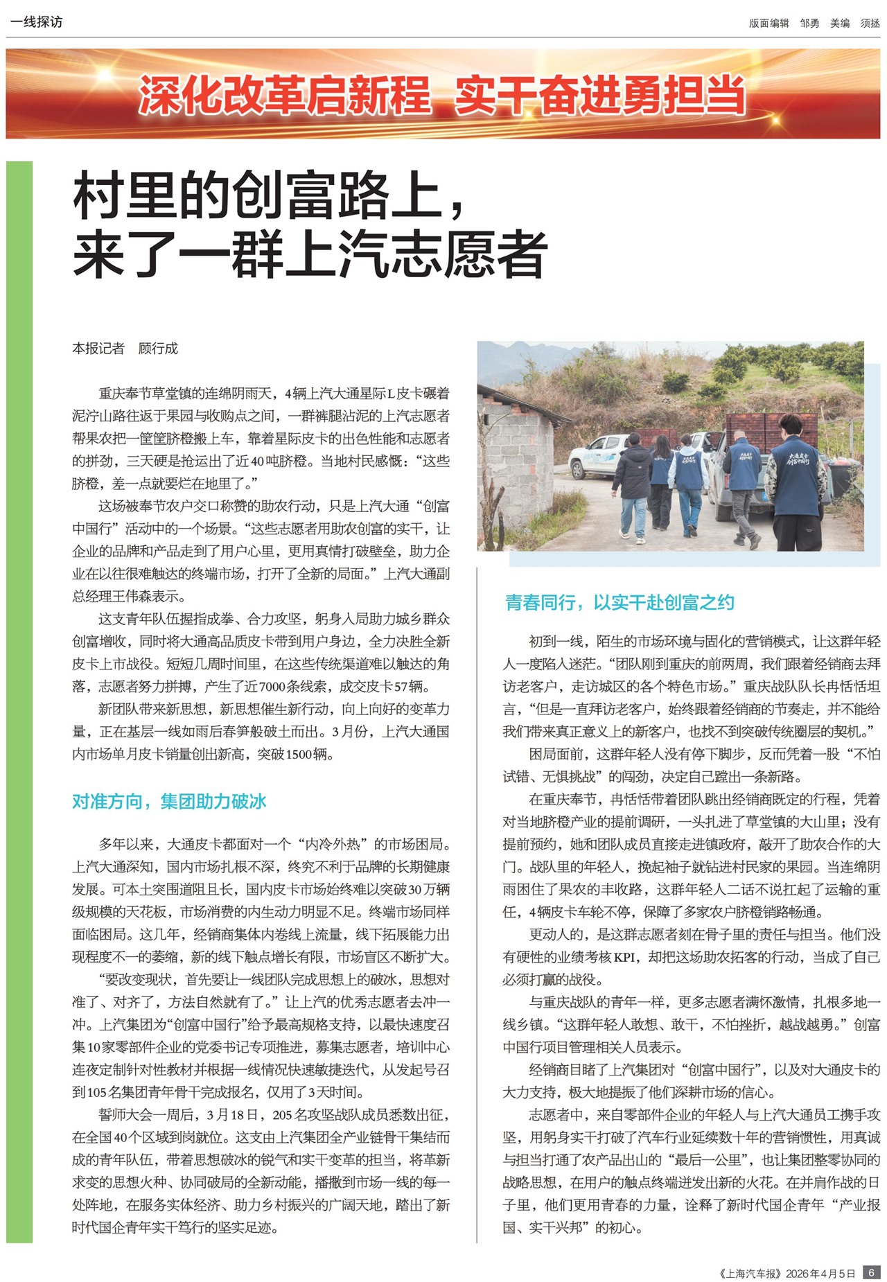 村里的创富路上,来了一群上汽志愿者