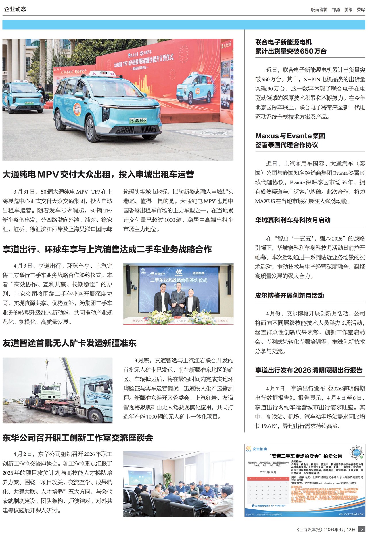 大通纯电MPV交付大众出租,投入申城出租车运营