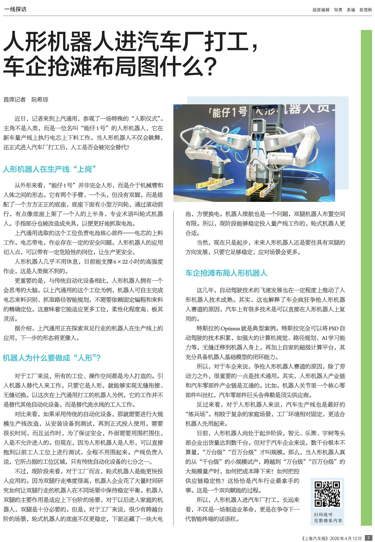 人形机器人进汽车厂打工,车企抢滩布局图什么?